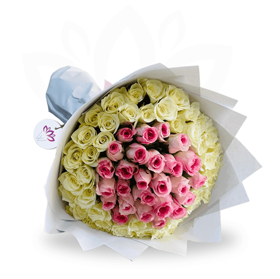 You can wish someone on their birthday with an elegant 60-rose birthday bouquet designed to bring joy and warmth to any celebration. You can take roses of different colors. At Bloomsward, you will get a special bouquet of sixty roses that includes vibrant pink and white roses. Such a striking flower arrangement can capture attention and instantly add charm to any setting.